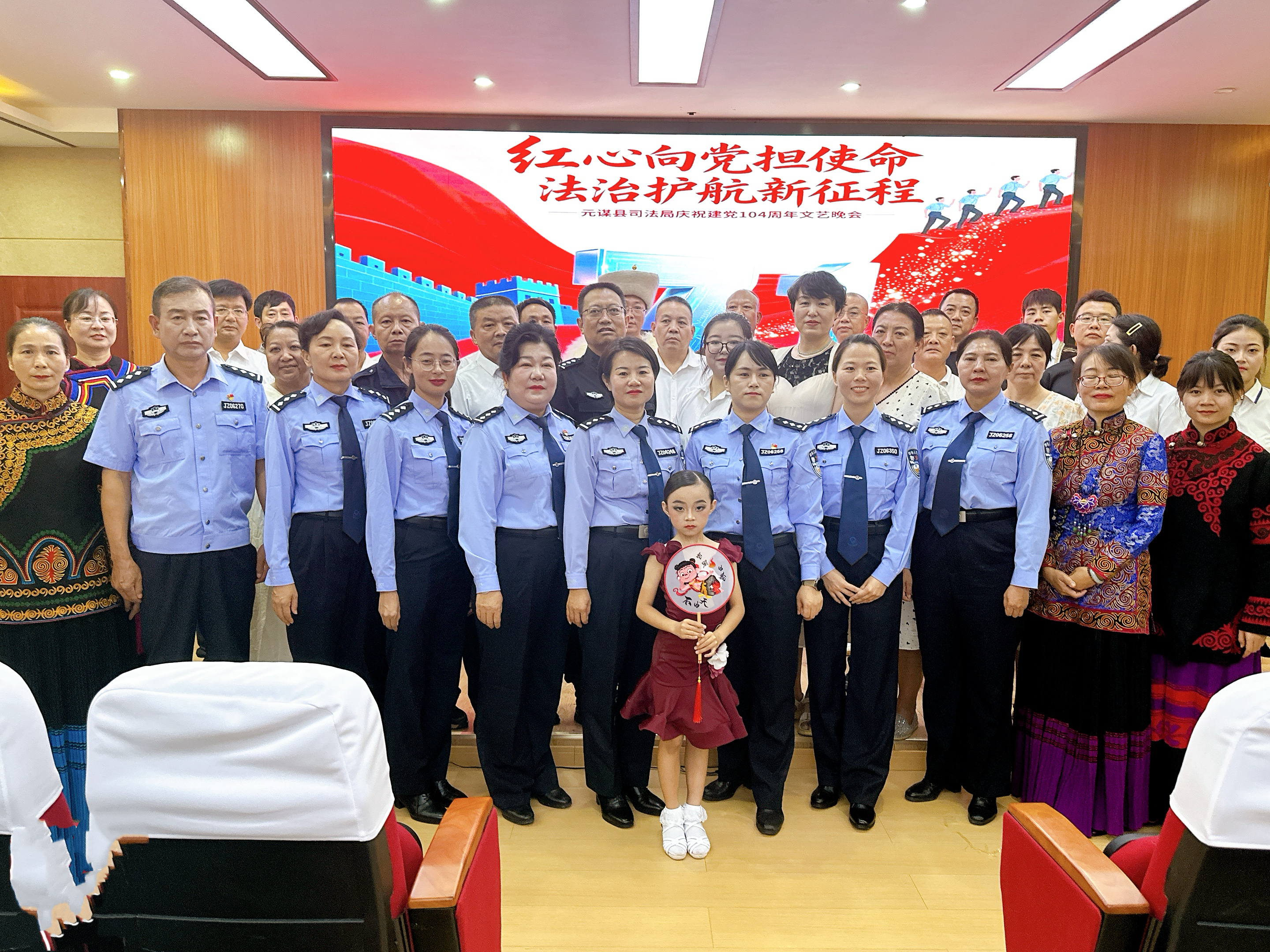 一场文艺演出展风采。局党组举行了“红心向党担使命,法治护航新征程”庆祝建党104周年文艺晚会。全局干部职工欢聚一堂,以歌舞、朗诵、乐器演奏等丰富多彩的节目形式,表达对党和祖国的深切祝福。晚会在朗诵《法在我心中》拉开序幕,他们用铿锵有力的声音,诉说《法在我心中》的深情与坚守,展现以法为剑、护佑民生的初心使命。独唱《为了谁》唱出了新时代司法行政人员守护正义、服务人民的铿锵誓言。合唱《司法女兵》诠释了她们英姿飒爽、不让须眉,用温柔与果敢在司法行政战线上绽放铿锵玫瑰。此次文艺演出让全体干部职工在艺术的熏陶中深刻感悟党的光辉历程和伟大精神,激励大家以更加昂扬的斗志、更加务实的作风,紧密团结在党的旗帜下,踔厉奋发、勇毅前行,为法治建设添砖加瓦,共同谱写新时代的壮丽篇章。