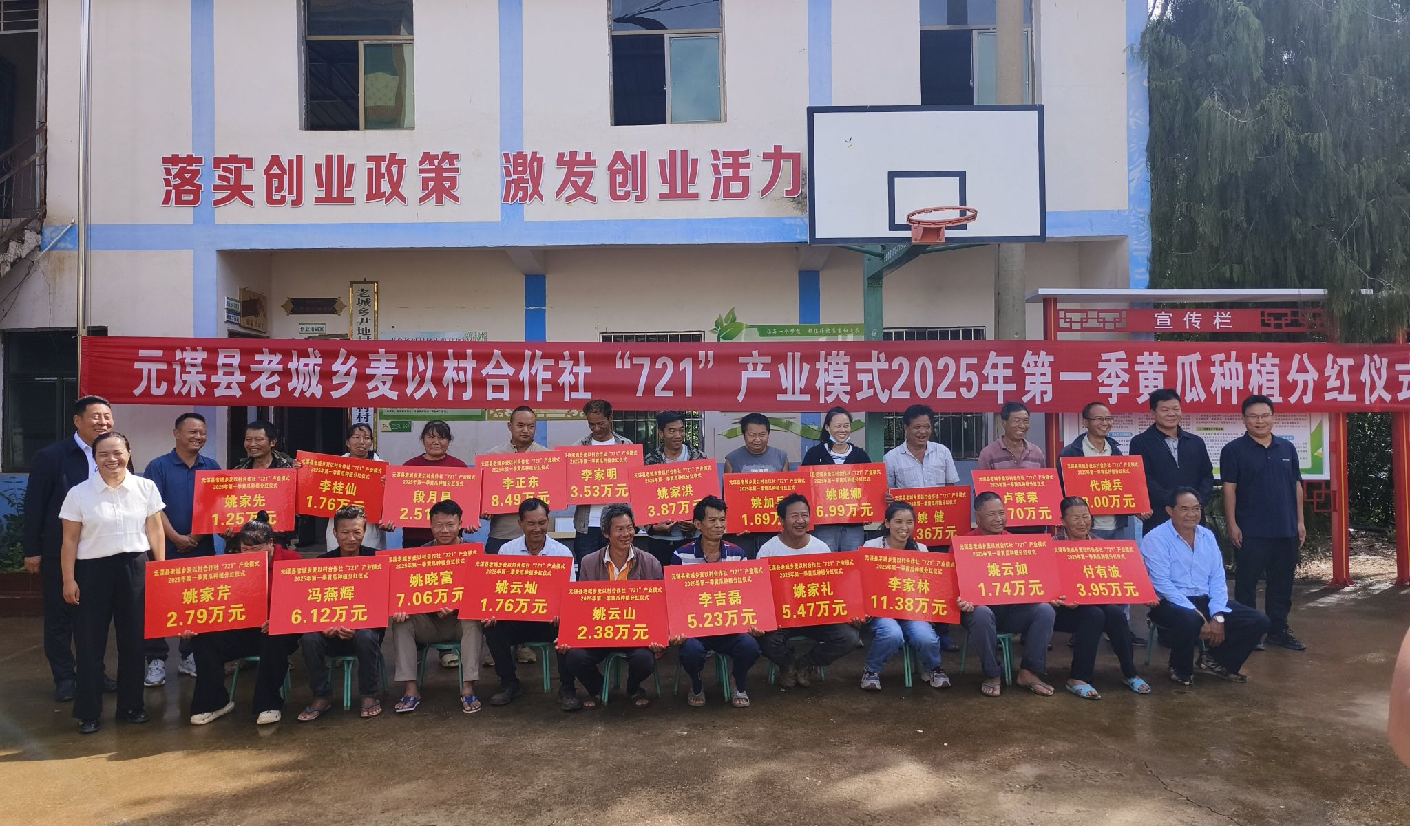 党建引领,激活乡村振兴“新动能”。在乡村党委政府支持下,麦以村党支部大胆创新,牵头领办股份经济合作社,动员全村39户农户入社,与大理耘飞农业科技有限公司合作,以土地质押的方式向元谋农商行老城分行借贷200万元用于流转和平整土地,通过政府、企业、合作社三方全面筹措发展资金共1500余万元,打造200亩现代设施精品果蔬基地。每季农产品销售结束,社员、企业、村集体按照7:2:1(70%、20%、10%)的比例进行收益(纯利润)分配。收益分配充分尊重农户主体地位,极大提高群众生产积极性,激活乡村振兴强大力量。