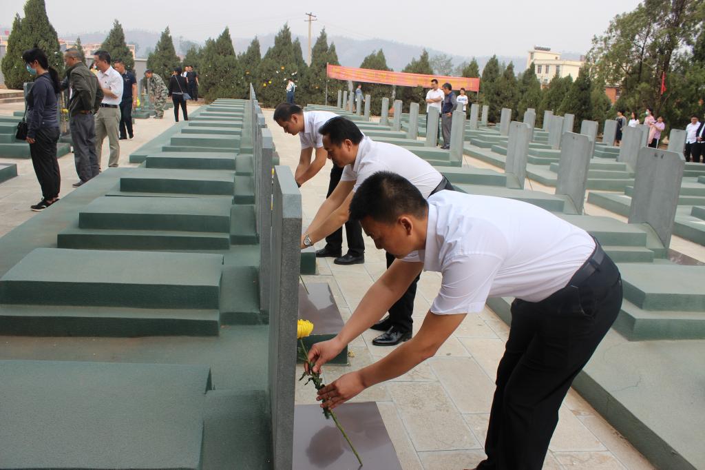 2021年4月1日上午,县退役军人事务局党支部以“主题党日”活动为契机,到能禹烈士陵园开展“学党史、祭英烈、守初心”清明祭英烈活动,向长眠在这里的革命先烈们表达诚挚的敬意和深切的悼念。