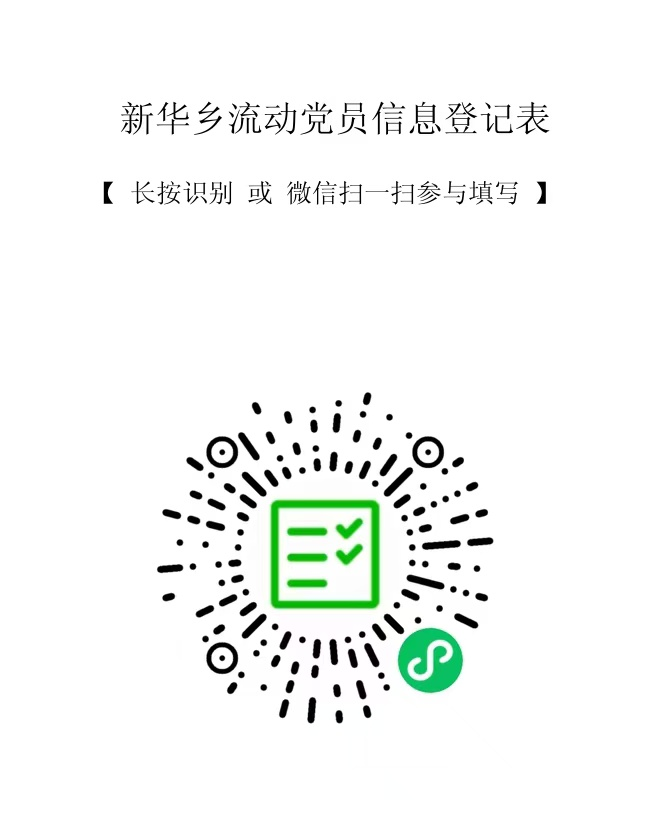 一、线上报到:扫描下方二维码,填写新华乡流动党员信息登记表,不到一分钟即可完成。