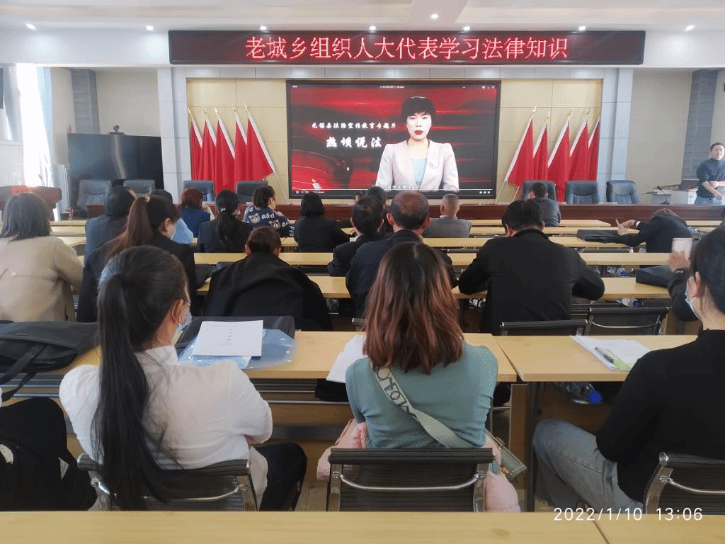 2022年1月9日至1月11日,老城乡召开第十二届人民代表大会第一次会议。为进一步提高县乡人大代表依法履职能力和履职水平,提高县乡人大代表的法律素养,老城乡在召开会议期间,认真组织人大代表、列席人员共98人学习法律知识。