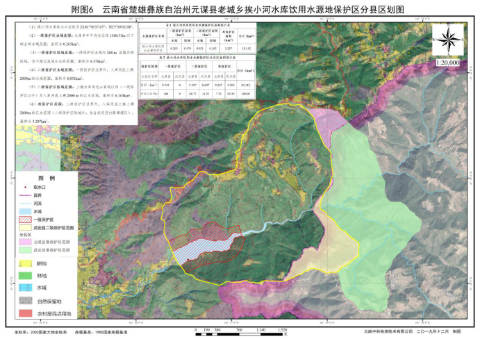 元谋县挨小河水库饮用水水源保护区划分结果表