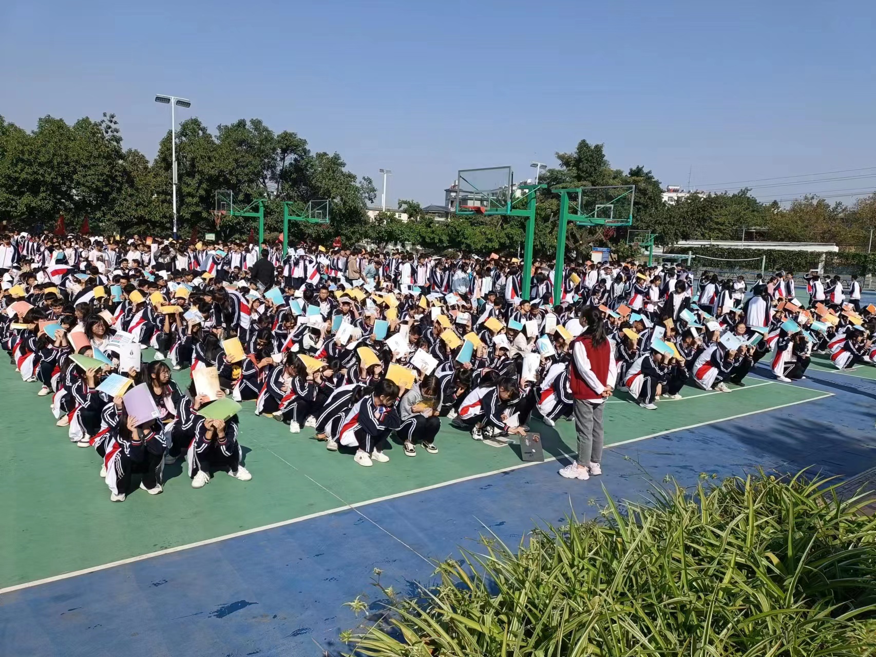 在防震演练中,全校老师组织到位、保障有力,全体同学严格按照学校预案要求和逃生路线,在极短的时间内,师生全员紧急撤离到操场空旷区域,整个演练过程井然有序。