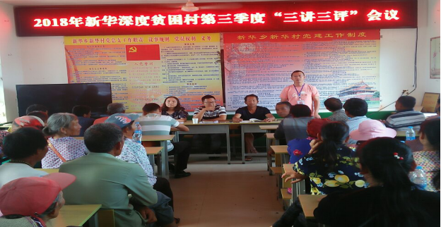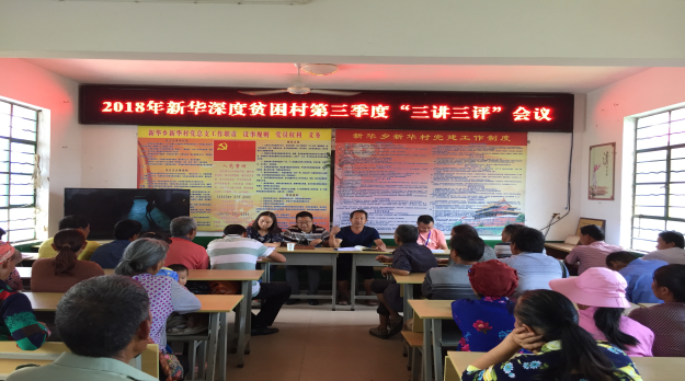 当前脱贫攻坚已进入向深度贫困地区聚焦发力的关键时期和攻坚拔寨的冲刺阶段。为促进驻村工作队员充分发挥作用,督促村组干部主动履职担当,激发建档立卡贫困户勤劳脱贫的内生动力。7月17日下午,新华村委会开展“三讲三评”工作会议。会议由乡人民政府副乡长刘艳琴主持,乡人大主席白云同志到会指导,村“三委”班子、驻村工作队员、全村的贫困户共计95人参加会议。