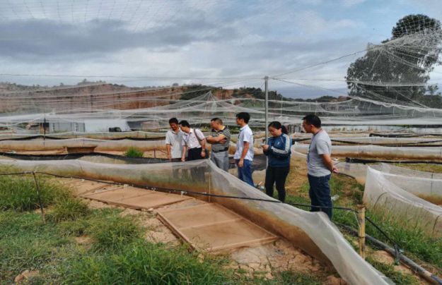 在华丰村委会黑斑蛙养殖基地的负责人就产业发展情况及产业发展如何带动贫困户创收进行了介绍,对黑斑蛙养殖技术、养殖方法及管理措施进行了详细的讲解,对新华村党总支参观人员所提出的问题进行了一一作答。