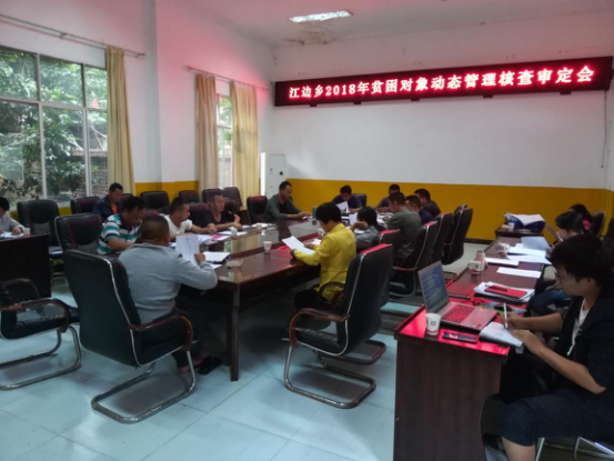 10月29日晚上,江边乡组织村三职干部、班子成员、乡卫生院、驻村工作队员及行业扶贫部门对2018年脱贫出列贫困户271户937人及新识别户进行逐一审核,对贫情再次分析,力求精确精准。