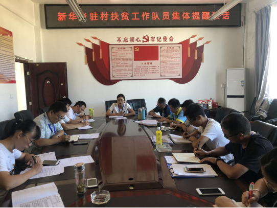 为进一步严肃工作纪律,压实脱贫攻坚工作责任,近期,新华乡召开驻村扶贫工作队员集体提醒谈话会议,乡党委书记杨晓丽主持会议并作讲话,分管领导、全体驻村工作队员、乡扶贫办工作人员共20人参加了会议。