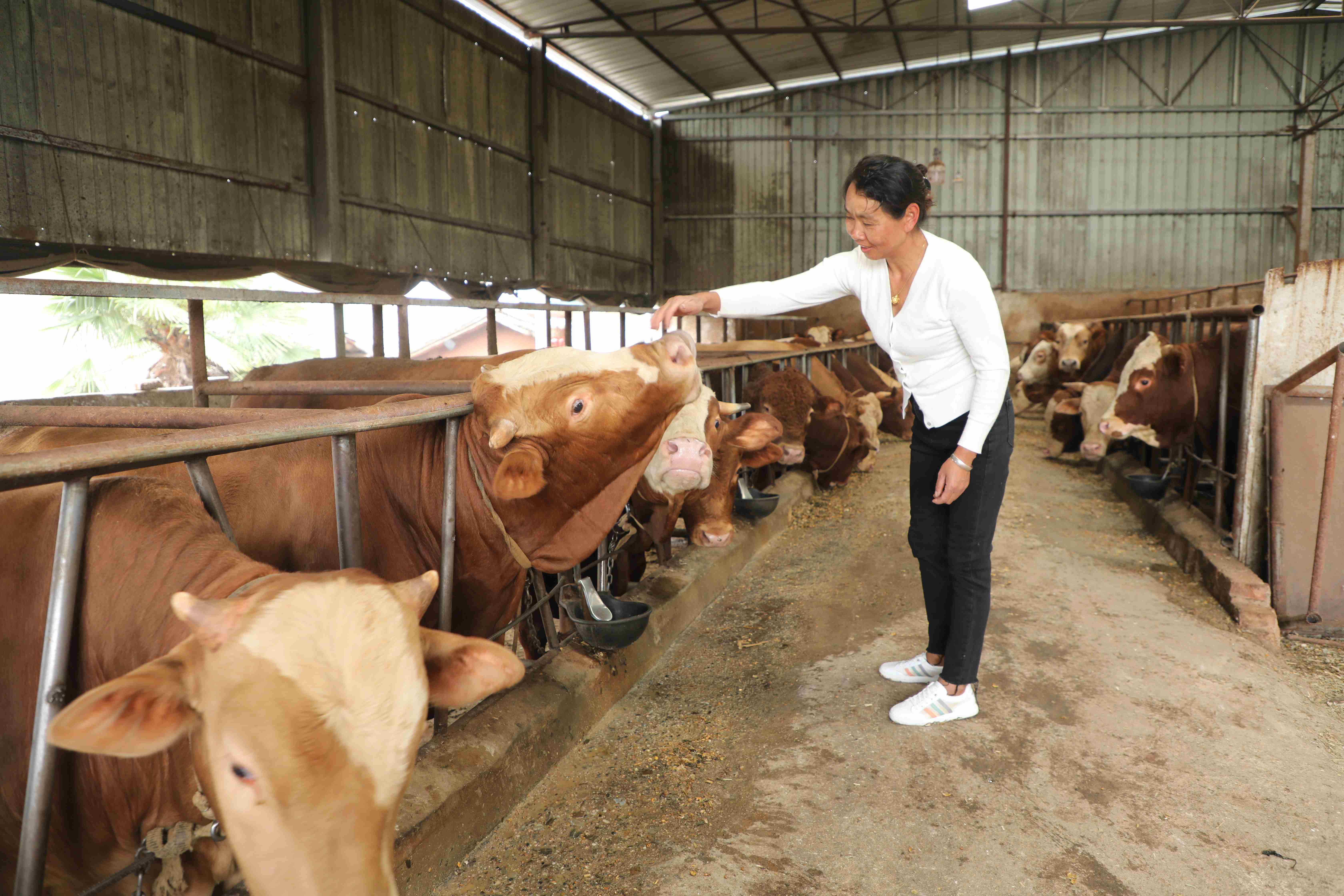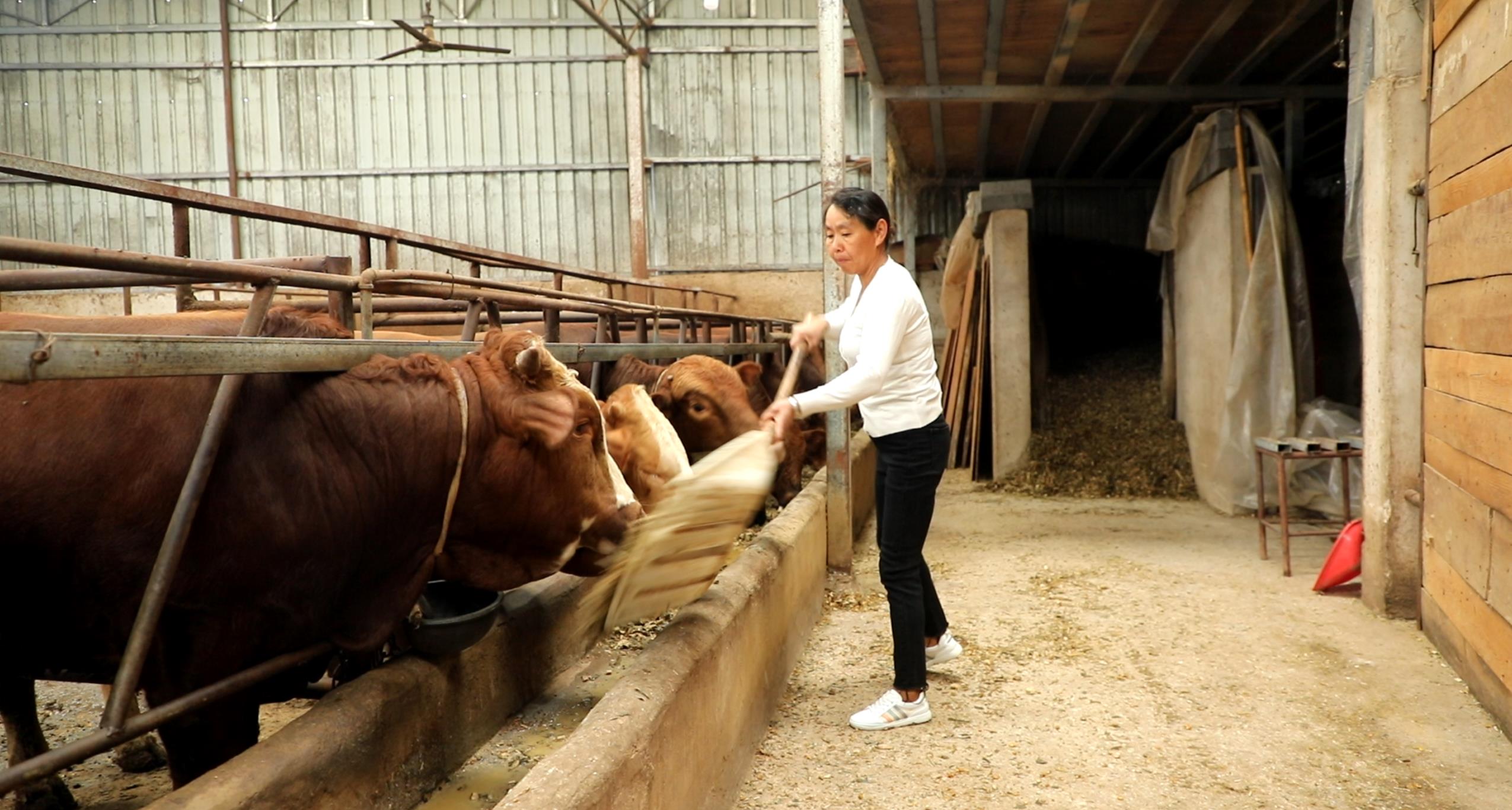 走进元谋县堂仙牧业有限公司的养牛场,一排排整齐宽敞的牛舍内,杨堂仙正忙着给牛添加草料,观察每头牛的健康状况。经过她的精心饲养,棚圈里的牛膘肥体壮,毛色锃亮。