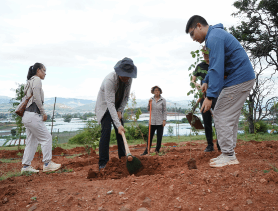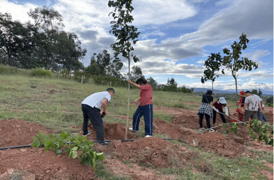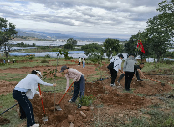 播种·以绿寄情:用实干担当守护绿水青山。在庄重的历史氛围感召下,植树活动正式展开。干部职工们热情高涨,干劲十足。大家两三人一组,挥锹铲土、扶苗填坑、培土浇水,各个环节衔接有序,配合默契。经过一上午的辛勤劳作,一棵棵新栽的树苗在元谋人遗址旁的山坡上迎风挺立,焕发出勃勃生机。这片“文旅同心林”不仅为古老的遗址增添了一抹动人的新绿,更象征着文旅人对历史的敬畏、对未来的责任。大家纷纷表示,亲手种下一棵树,就是为子孙后代播下一片希望,这是对历史最好的告慰,也是对未来最美的承诺。