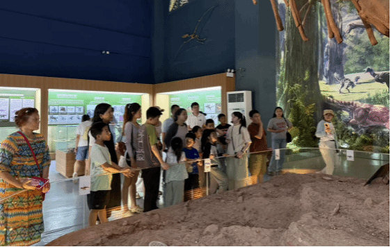节日期间,博物馆精心打造多项趣味文博科普活动。“州庆转转乐”互动体验以趣味转盘答题形式普及州庆文化和古生物知识,寓教于乐,让观众在互动闯关中共庆州庆。
