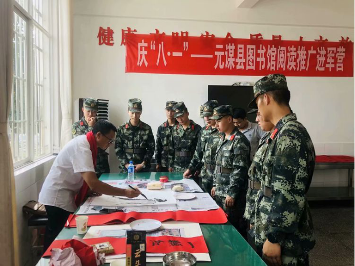 元谋县文化和旅游局袁陆华老师还为年轻的士兵现场题字并赠予士兵。大家对袁老师的画作赞不绝口!