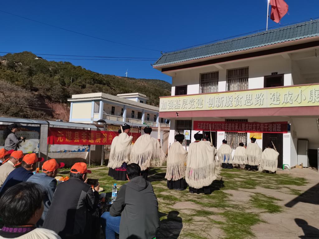 2022年初春,乡村振兴全面推进,红土大地洒满希望。走进那迪村委会,铺满松毛的院子里传来阵阵欢声。“《阿鲁举热》是彝族(诺苏)地区的英雄史诗,是我们彝族人的文艺精品,我们要一直传承下去。”海文才在凉山乡非遗传承人暨农村文艺骨干培训班上说到。