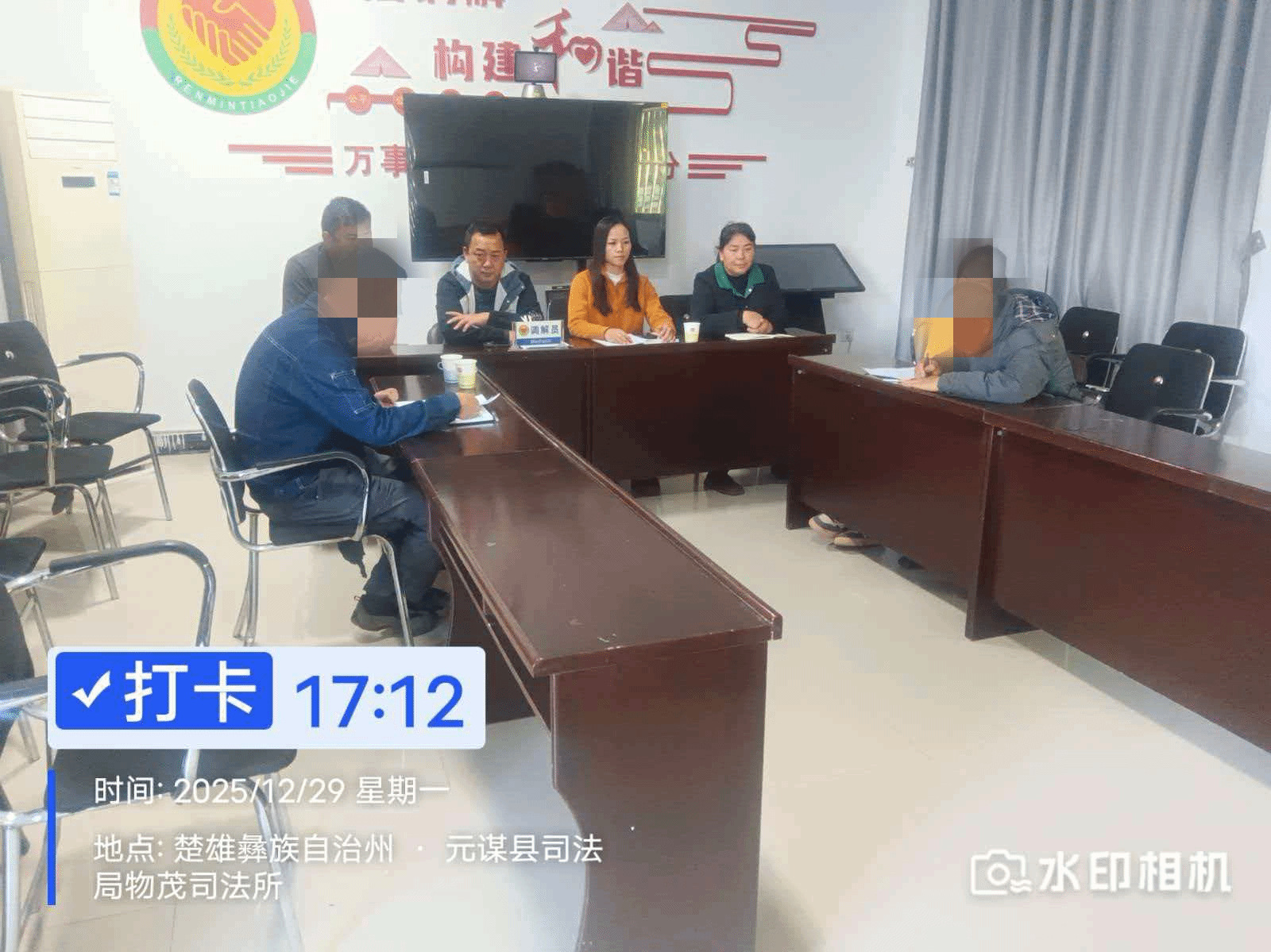 面对这一棘手的“硬骨头”,物茂司法所于2025年12月29日正式组织调解。调解初期,双方各执一词,互不相让,调解一度陷入僵局。司法所调解员迎难而上,秉持“公平公正、依法调解”的理念,采取灵活策略:一是背靠背劝导,释法明理奠基础。调解员分别与公司代表和李某进行单独沟通。对企业方耐心讲解群众财产受损的客观事实,强调履行社会责任、维护良好群众关系对企业长远发展和地方营商环境的重要性;对李某则安抚其情绪,详细倾听诉求,同时依据事实和相关法律法规,帮助其理性认识问题复杂性,理解企业的部分立场。二是面对面调解,聚焦共识求突破。通过释法说理、分析利弊、情感沟通,在有效缓解双方对立情绪的基础上,调解员组织双方进行“面对面”协商。调解员引导双方将焦点从责任争论转向解决问题的实际方案上,围绕淤积事实、损失情况、清理可行性及补偿标准等核心问题展开务实讨论。调解员依据村组人员现场勘查情况,在双方认可的事实上,提出兼顾双方利益的调解建议,在责任分担、补偿额度等关键点上反复斡旋,力促双方互谅互让。