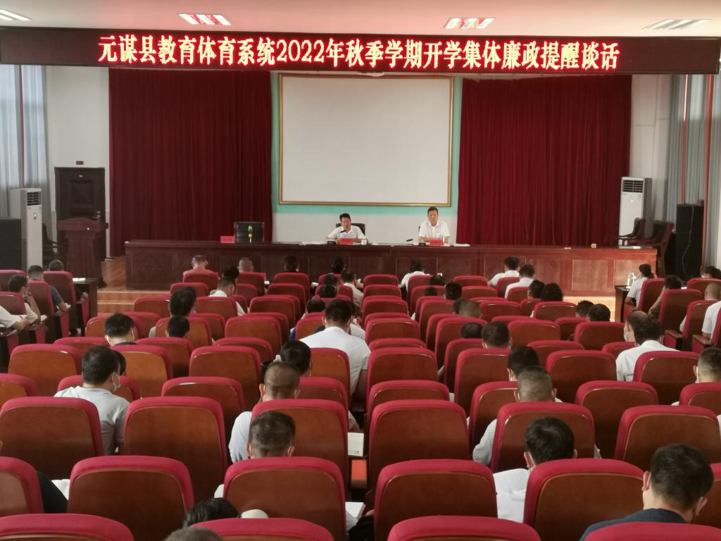 会上,郑志学对参会人员开展了2022年秋季学期开学集体廉政提醒谈话,县公安局、县卫生健康局、县市场监管局分别对2022年秋季学期校园安全、校园疫情防控、食品安全等控工作进行了安排,县教育工委、教育体育局通报了2021学年教育体育工作开展情况、体育竞赛获奖情况,并对下一步工作进行部署。