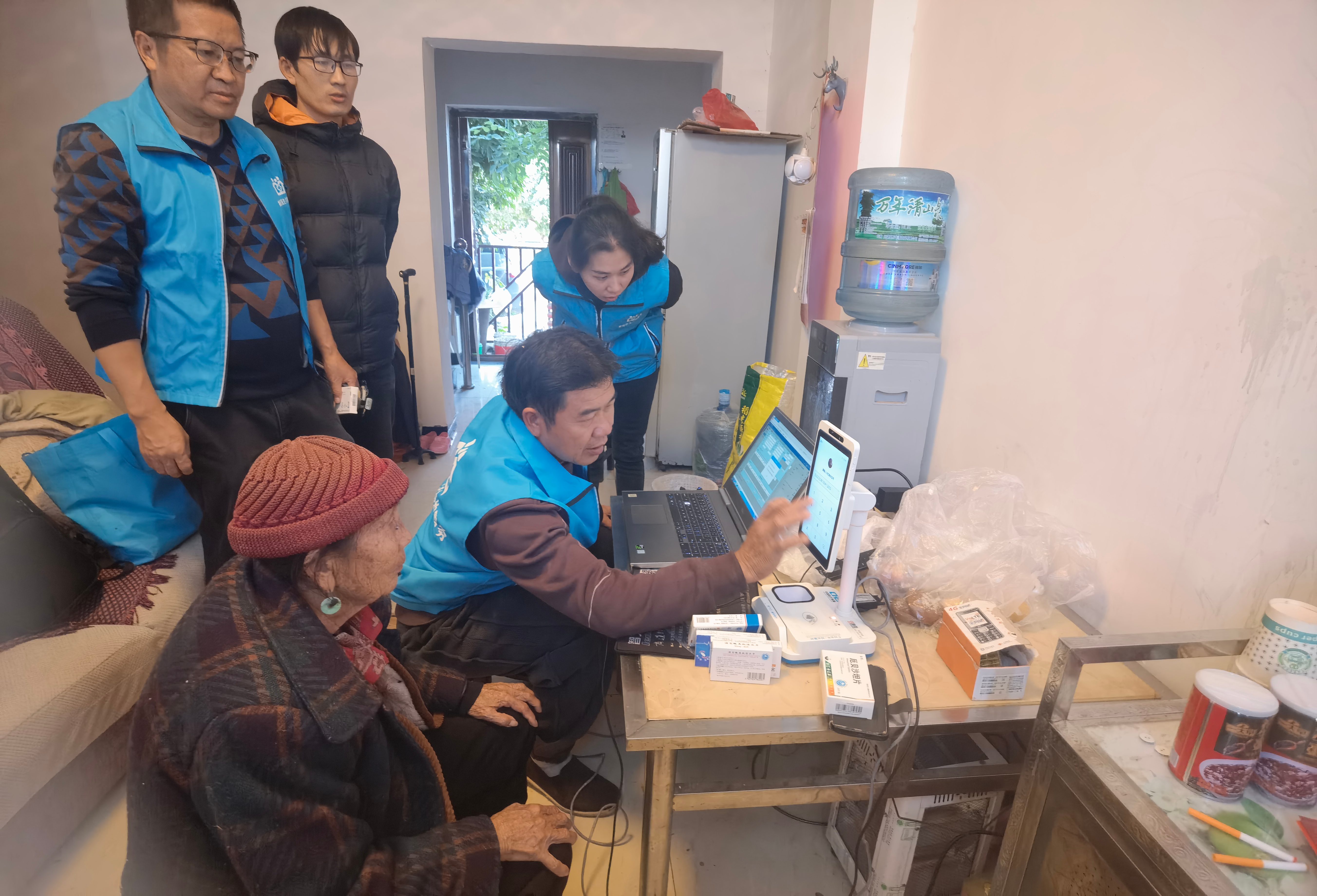“行走”的慢病药房让服务更贴心。自2025年3月辖区推行“健康180行走的医院”以来,针对病情稳定的慢性病患者,家庭医生团队可依据医保政策开具最长8周长处方,并协调乡镇卫生院药房备药;对于长期卧床老人,团队还提供药品配送上门服务,同步建立动态健康档案。此次服务中,为减轻村医工作量,避免其来回奔波,家庭医生团队不仅携带常用慢病药品,还通过物理网卡、VPN网络技术,将基层村医系统和医保刷脸终端“搬”到患者家中,实现医保现场结算、药品现场发放。“以前每月得跑县城开药,后来村医上门检查送药,现在在家就能开药,手机上还能查健康报告,心里踏实多了!”患有高血压的留守老人李阿姨感慨道。