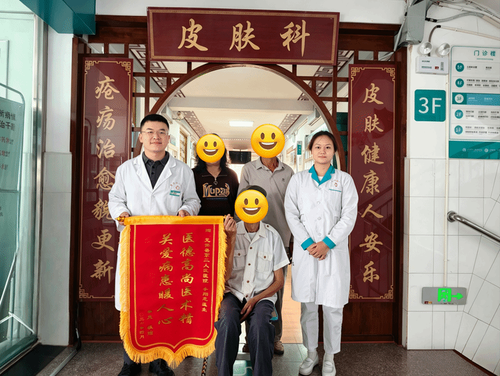 考虑到老人行动不便,皮肤科医护团队不仅在院内开展精细化施治,更手把手教会家属居家护理技巧,通过电话、微信持续跟进随访指导,用“院内精治+院外延伸”的暖心服务,为老人筑牢健康防线。历经两个月的悉心照料与精准治疗,姜爷爷足部的顽固溃疡终于完全愈合,原本紧锁的眉头舒展,脸上重拾久违的笑容:“李医生真是人民的好医生!皮肤科的娃娃们业务好、待我像亲人一样贴心!”老人高兴地说。这份沉甸甸的认可,源于科室“德技双馨”理念的深耕细作。