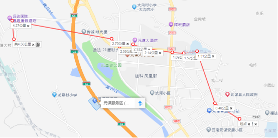 热水塘(起点站)→远达温泉酒店→时光里小区→凤凰湖公园→滨江大道→法那禾桥→好日子酒店→百惠超市→老中医院→元谋客运站(终点站)